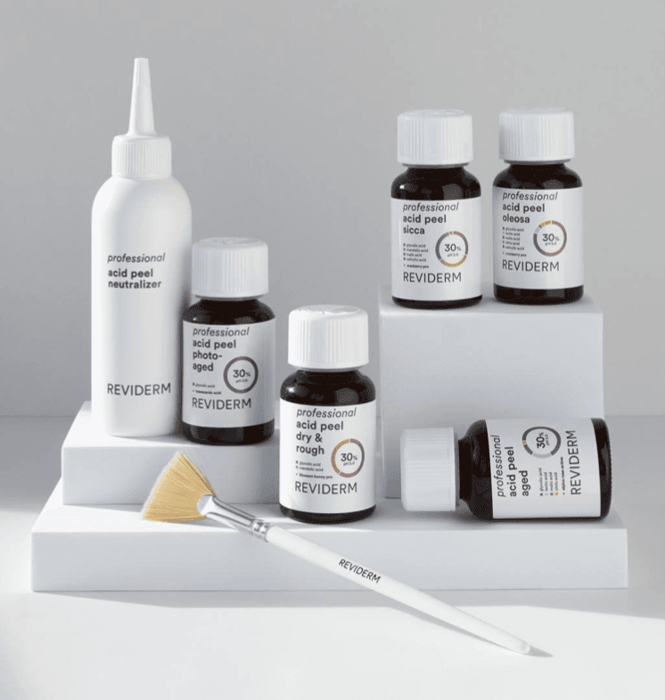 Unikátní peeling s ovocnými kyselinami REVIDERM acid peel vhodné pro každou pleť, jako individuální přizpůsobí se potřebám různých stavů pokožky.