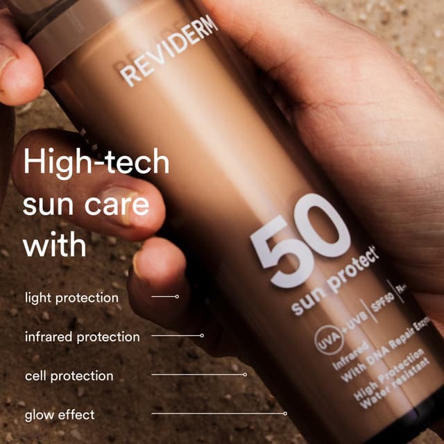 Špičková sluneční péče se světlem, infračerveným zářením, buněčnou ochranou a rozjasňujícím účinkem.